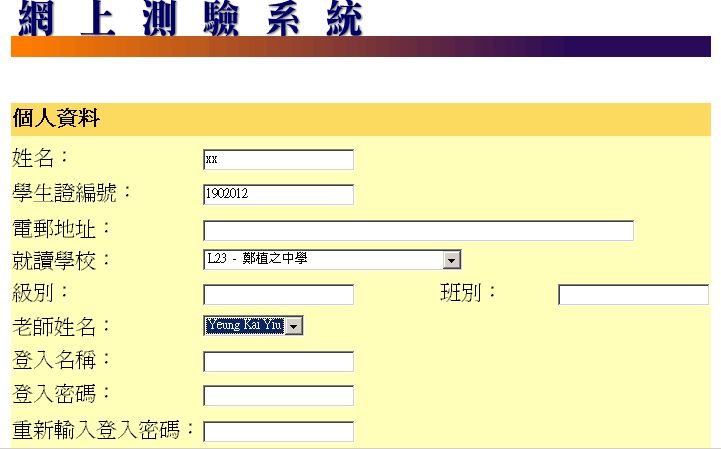 2. 在登記頁中填上所有資料,就讀學校及老師性名選擇如下: