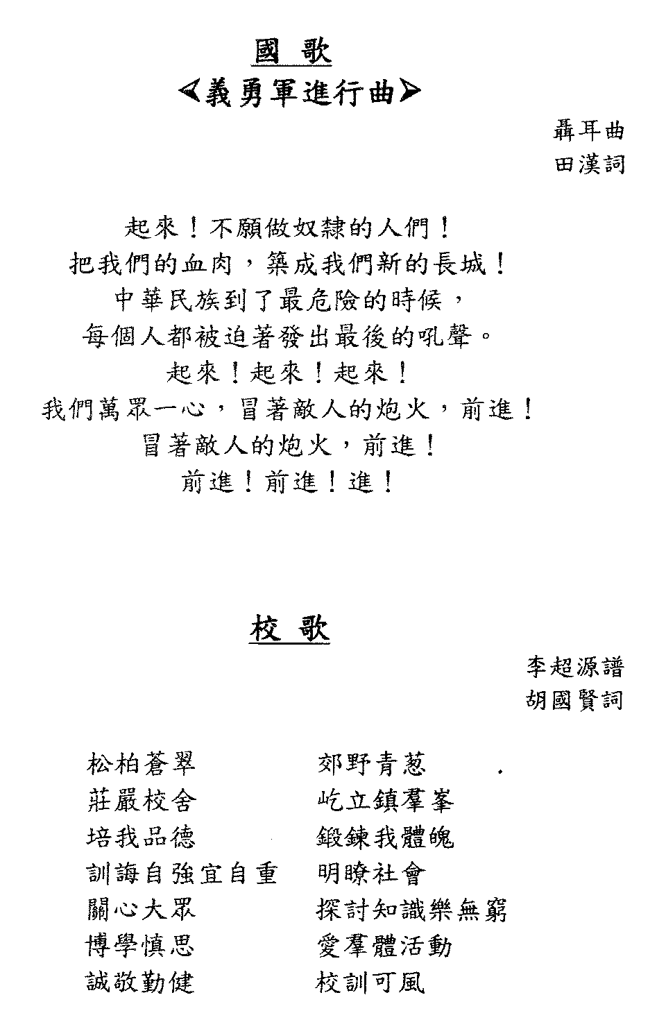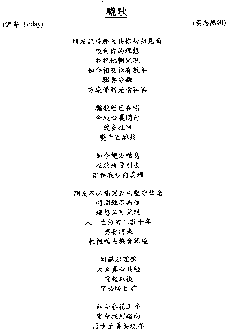 | 參觀海關 | 福音營 (12-2003) | 學校畢業禮飲歌:驪歌 | 校歌 |